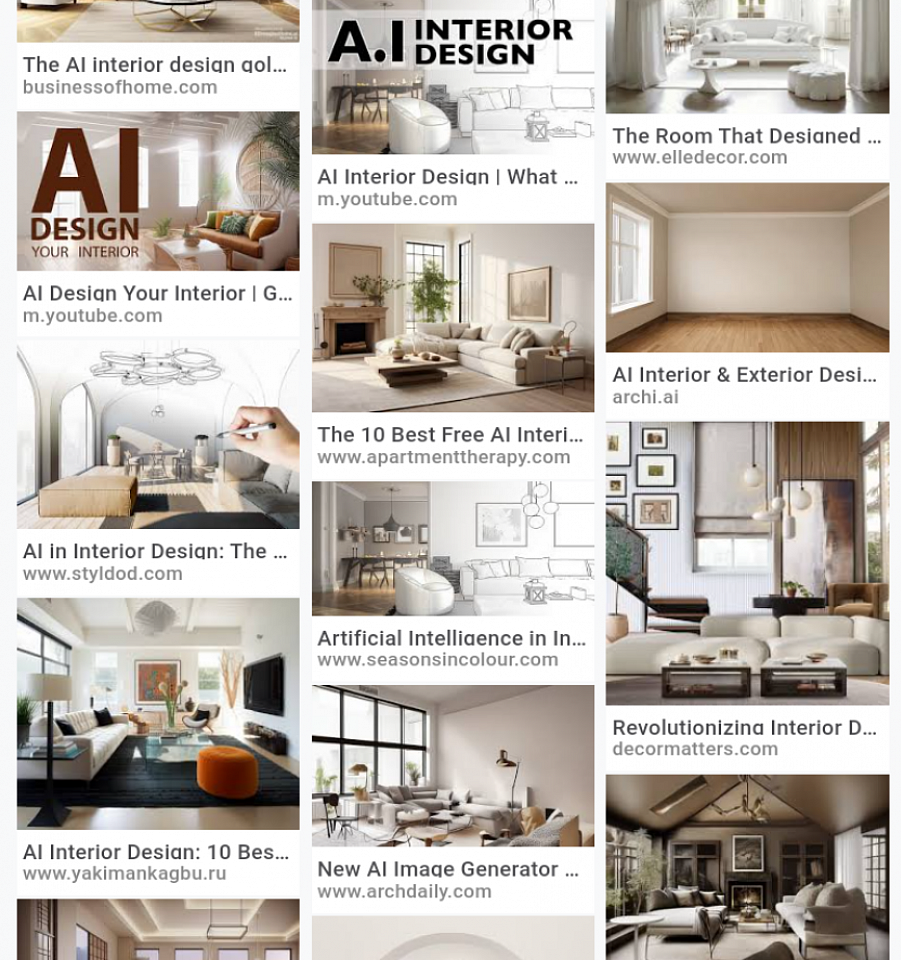 - "Interior AI Design - Get tons of home design ideas rendered by AI" https://airoomplanner.com/interiorai/design